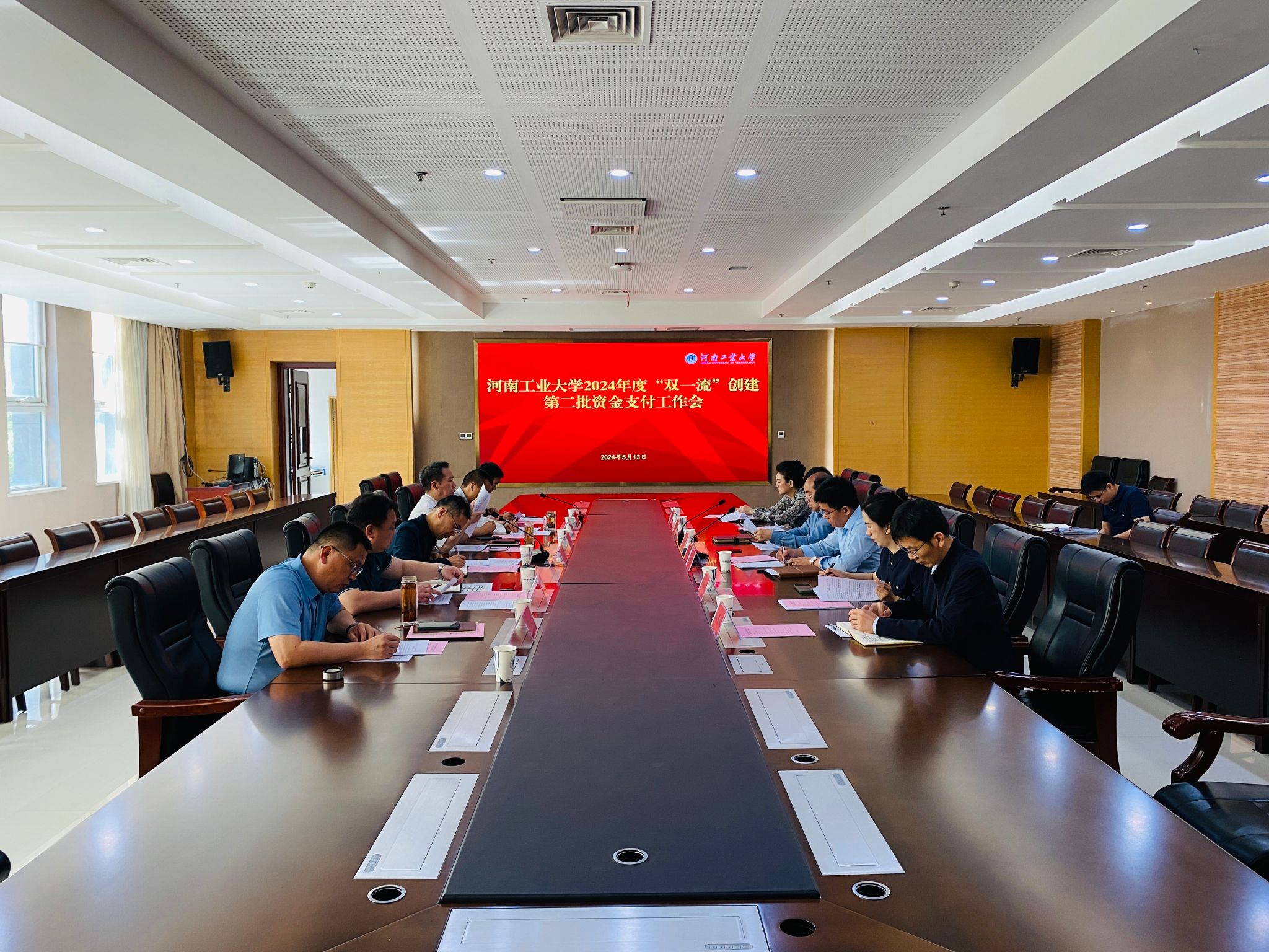 5月13日,学校在学术报告中心D203会议室召开2024 年度“双一流”创建第二批资金支付工作会。党委宣传部、人事处、科技处、研究生院、实验室管理处、国际交流与合作处、财务处、审计处、国有资产管理办公室、粮油食品学院、粮食和物资储备学院主要负责人,学科建设办公室全体成员参会,会议由孙尚德主持。