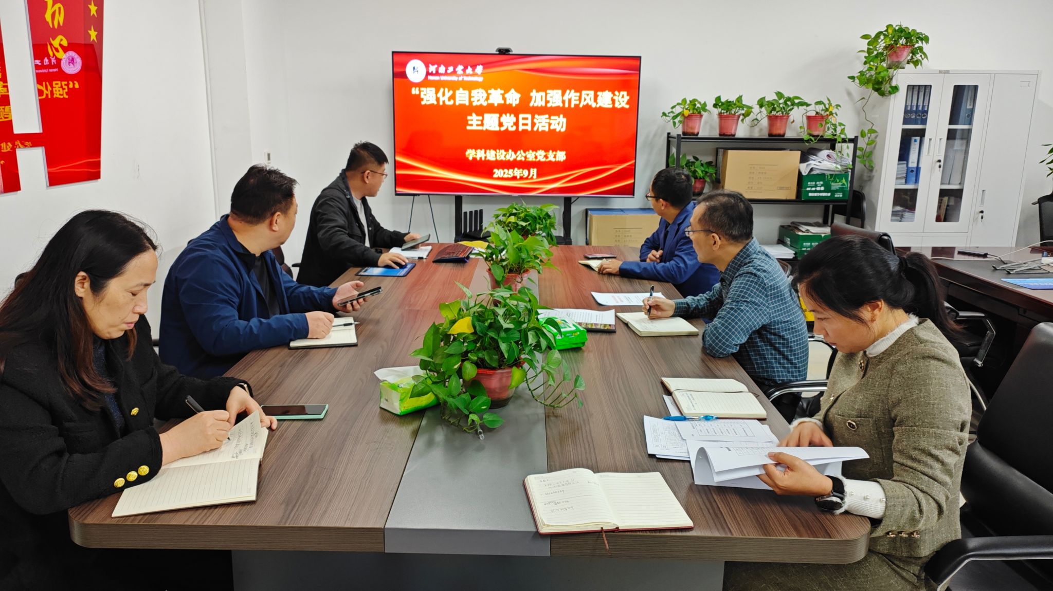 为深入贯彻中央八项规定精神学习教育,学习习近平总书记关于党的自我革命的重要思想,切实加强党员干部队伍建设,2025年9月19日上午,学科建设办公室党支部组织开展了“强化自我革命 加强作风建设”主题党日活动。支部全体党员参加,活动由支部书记孙尚德主持。